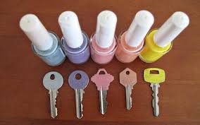 - Έχεις τόσα κλειδιά και κάθε φορά που πας να ξεκλειδώσεις την πόρτα σου πρέπει να κάθεσαι να ψάχνεις πιο είναι το κλειδί που ταιριάζει; Η λύση είναι μια! Πάρε διαφορετικά χρώματα βερνίκια νυχιών και βάψε με κάθε χρώμα ένα απο τα κλειδιά σου. Κάθε κλειδί θα έχει διαφορετικό χρώματα και μέσα σε λίγο καιρό θα έχεις μάθει ποιο κλειδί ανοίγειι κάθε πόρτα!